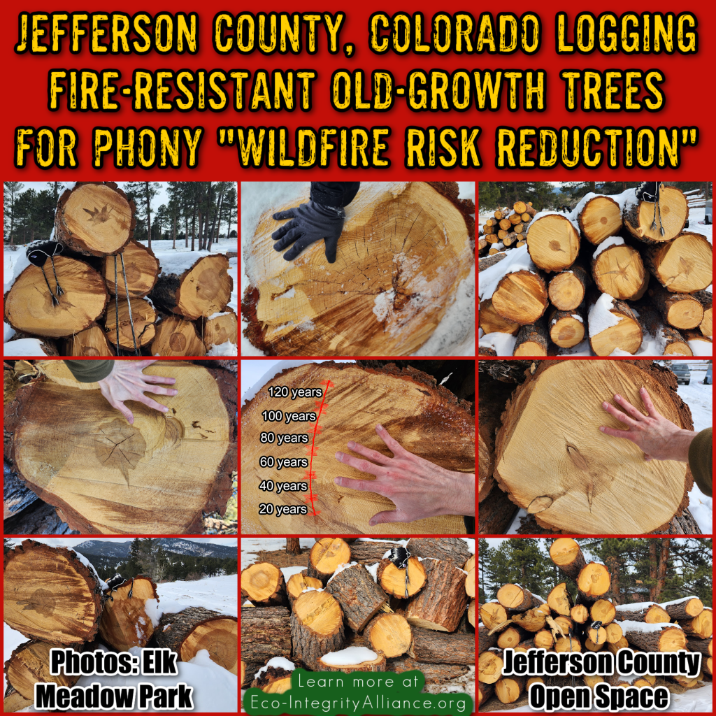 “Not only is Jefferson County clearcutting trails and logging fire-resistant old-growth trees under the phony guise of ‘wildfire risk reduction,’ making wildfires burn hotter and spread faster by opening forests to sun and wind instead of making homes Firewise, not only will our elected officials silence constituents who so much as bring it up in public meetings, but they’re willing to lie on the record about it all, despite photographic proof to the contrary.”