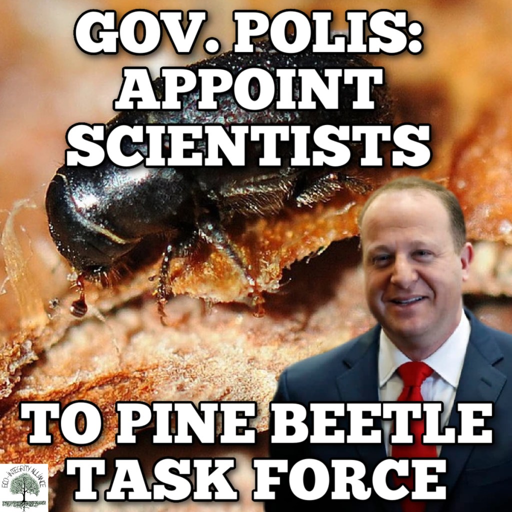 Please contact Colorado Governor Jared Polis today at (303) 866-2471 or Governorpolis@state.co.us with your own message or simply: “Please appoint independent scientists without financial conflicts of interest and conservationists who don’t promote public lands extraction to the ‘Ponderosa Mountain Pine Beetle Task Force.’”