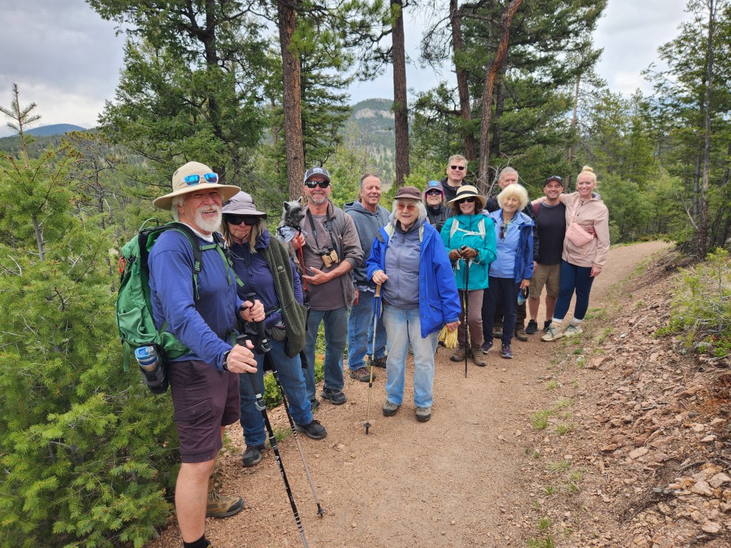 On May 18, a group of 15 locals (and 2 dogs) hiked through a section of Beaver Ranch Park–threatened this July by aggressive and scientifically-contested “fuel reduction” logging by Jefferson County Open Space–to learn more about the forest and ways to protect it.