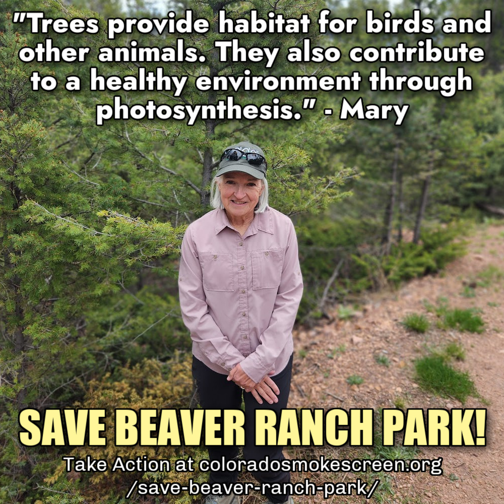 Several of those who use and love Beaver Ranch Park chose to be photographed in front of a favorite tree and give a reason why they think the park should be protected from scientifically-contested “fuel reduction” logging by Jefferson County Open Space.
